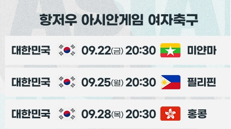 여자축구의 인기는 남자축구보다 덜하지만 국제경기에서 뛰는 여자축구 선수들의 모습을 보면서 열심히 응원할 생각입니다. 이번 항저우 아시안게임 여자축구 선수 조편성은 그룹 E입니다. 여자축구는 3년 연속 동메달을 획득했습니다. 이번 경기에도 꼭 메달을 딸 수 있기를 바랍니다.